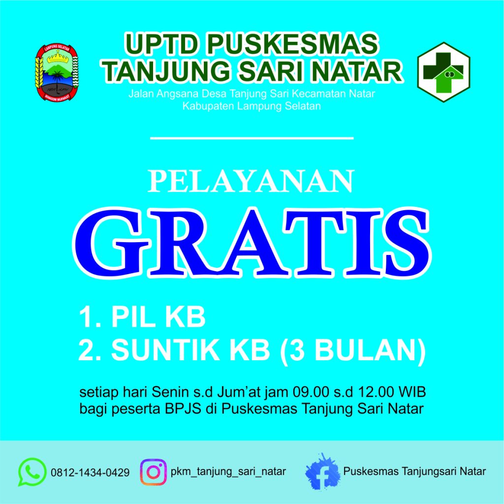 pkmtanjungsarinatar.lampungselatankab.go.id (28/07/2025) – Dalam upaya meningkatkan kualitas kesehatan masyarakat, khususnya kesehatan reproduksi, UPTD Puskesmas Tanjung Sari Natar memberikan pelayanan gratis untuk program Keluarga Berencana (KB) bagi peserta BPJS Kesehatan.
