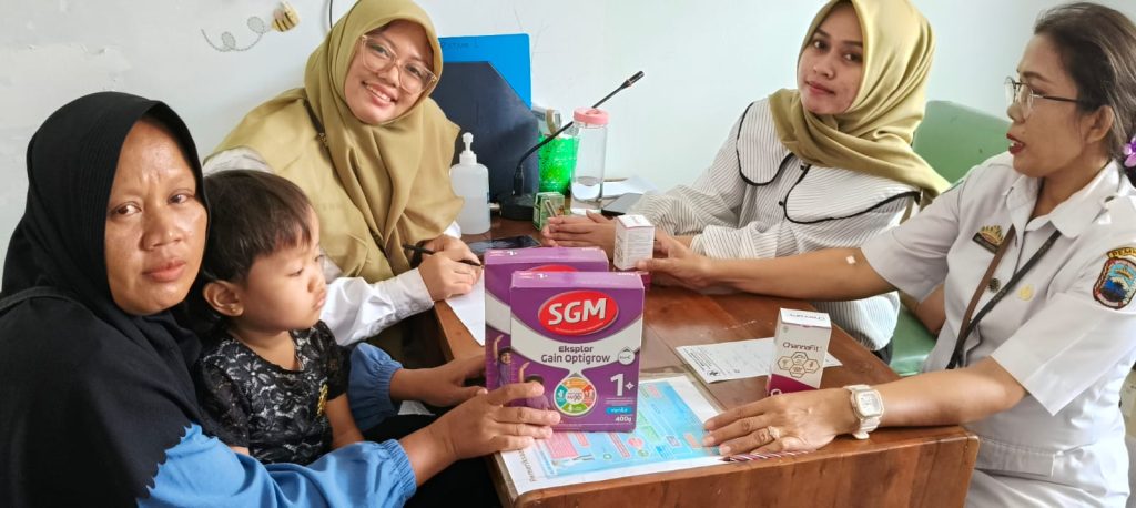 Pendampingan ini dilakukan dengan memberikan susu, vitamin, serta Program Makanan Tambahan (PMT) yang sesuai dengan kebutuhan gizi anak-anak yang mengalami stunting dan kekurangan gizi. Langkah ini bertujuan untuk membantu mereka mendapatkan asupan nutrisi yang optimal, sehingga pertumbuhan dan perkembangan mereka dapat lebih baik.